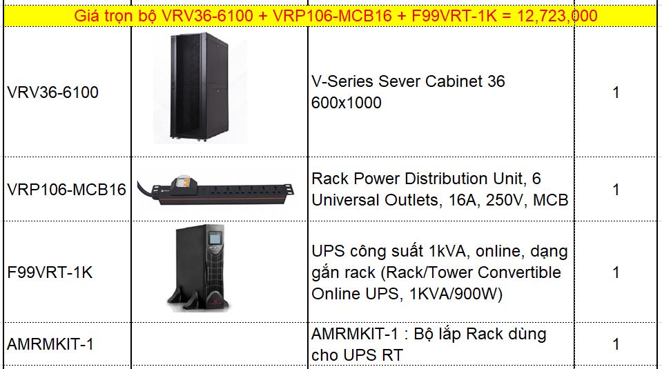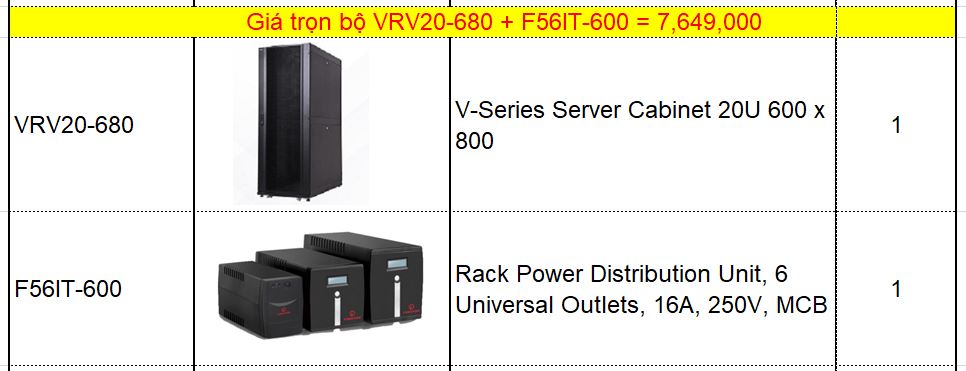 Bảng giá khuyến mãi mua tủ bộ lưu điện UPS Fredton tặng tủ rack VietRack thanh nguồn PDU